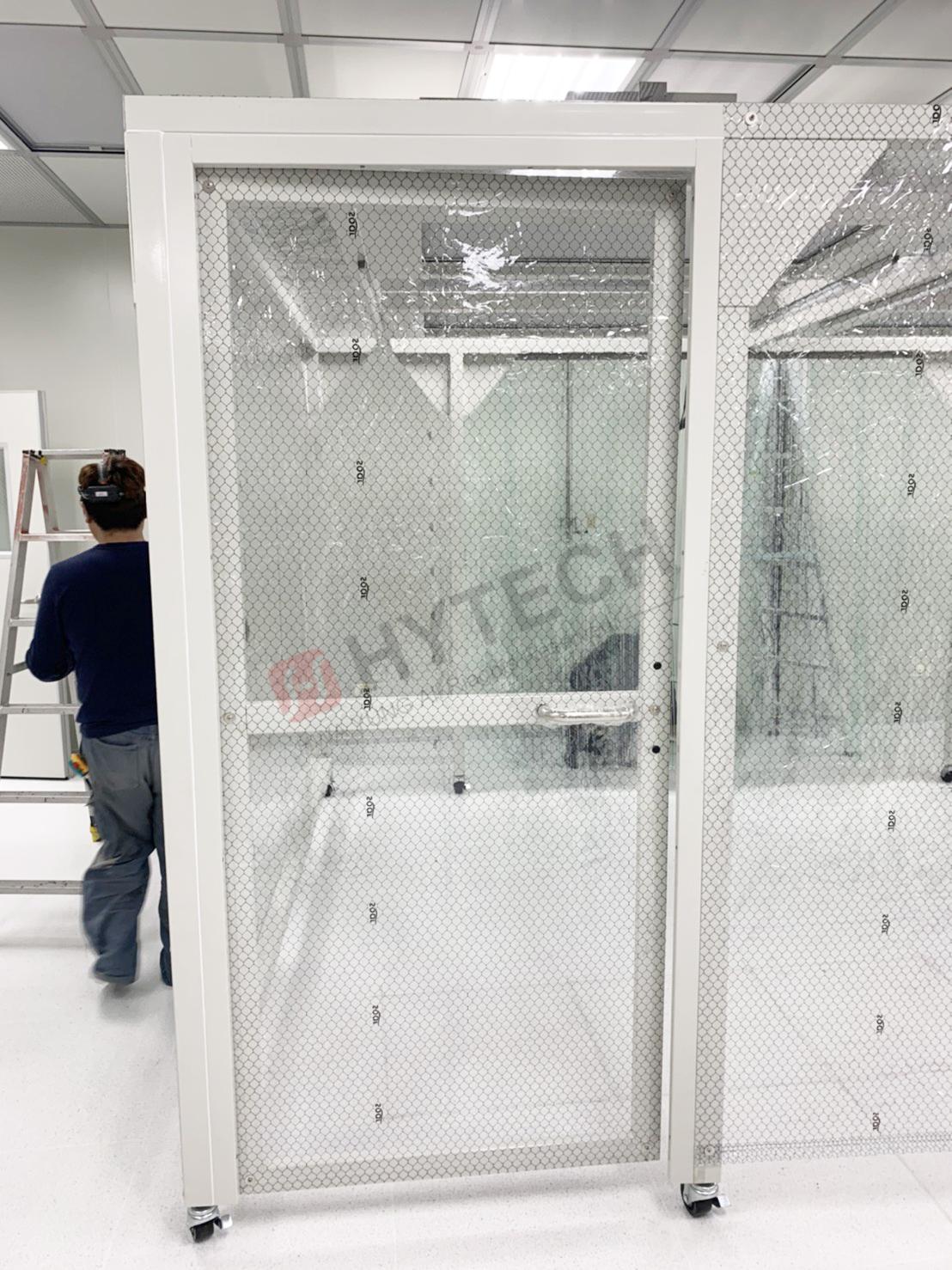 業主礙於空間限制之下,使用可移動式-無塵工作站,配合廠間動線可隨時調整無塵工作站的位置。