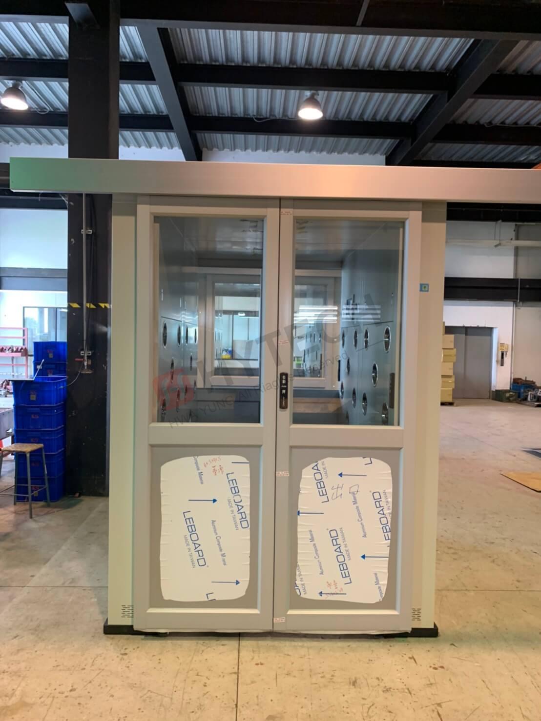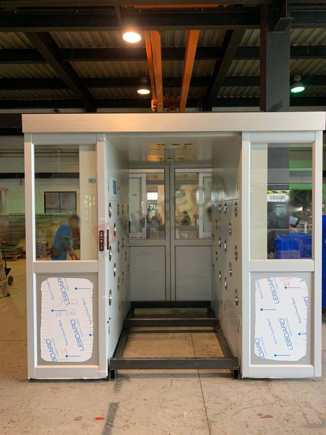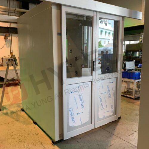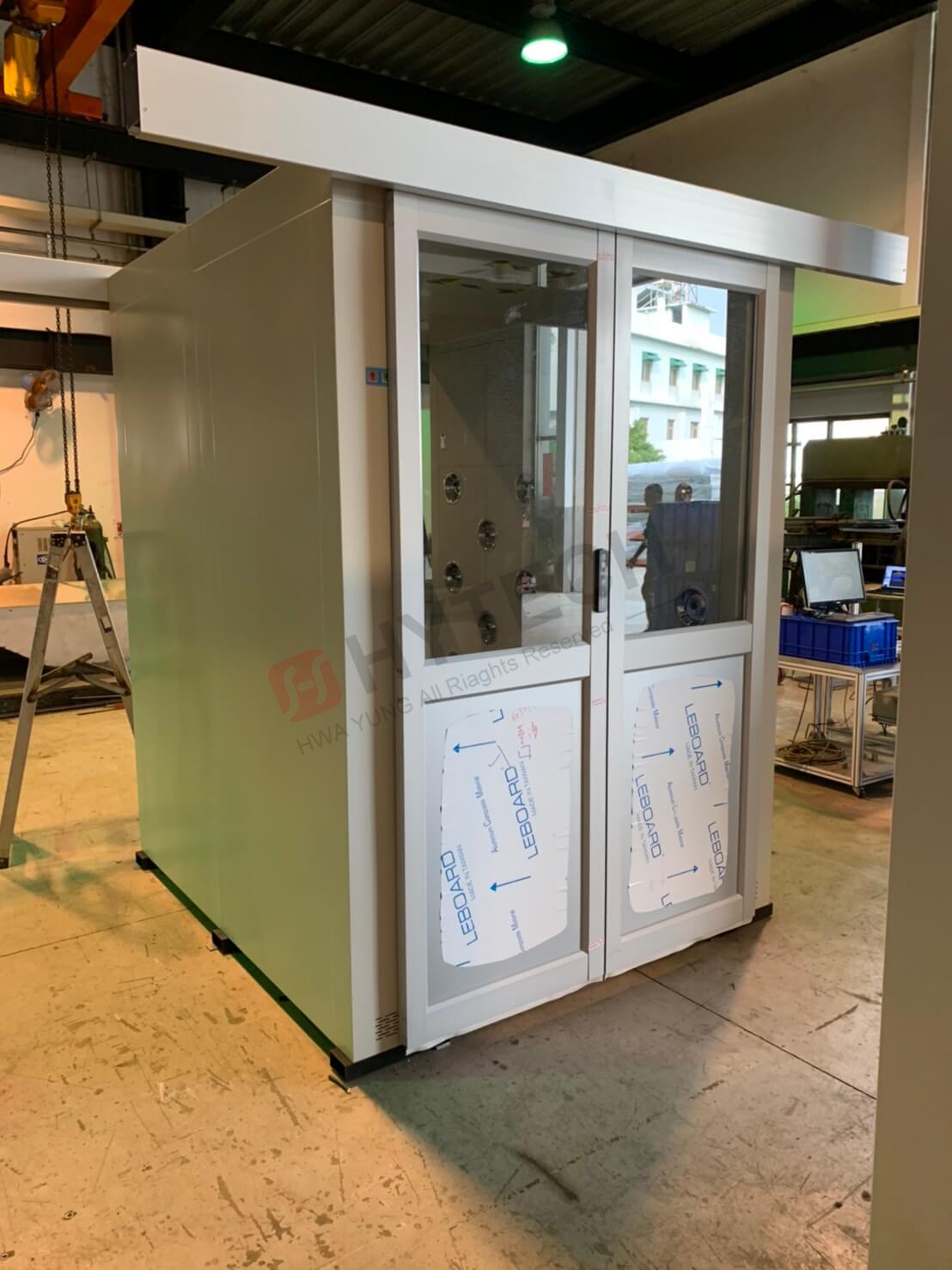 出口國外,依客戶需求加長加寬,可容納雙人同時進行除塵,並搭載自動門功能(雙門)。
