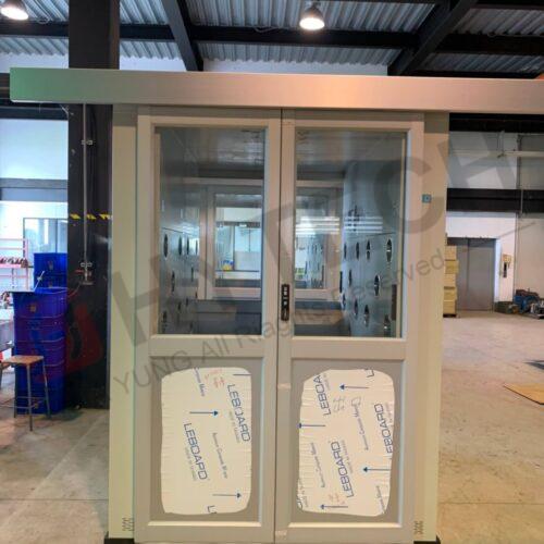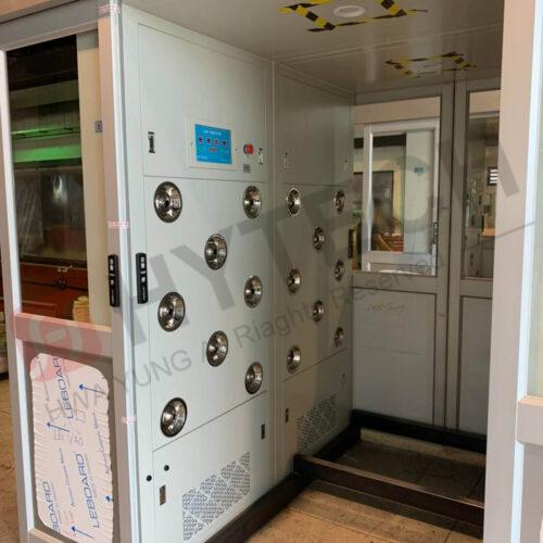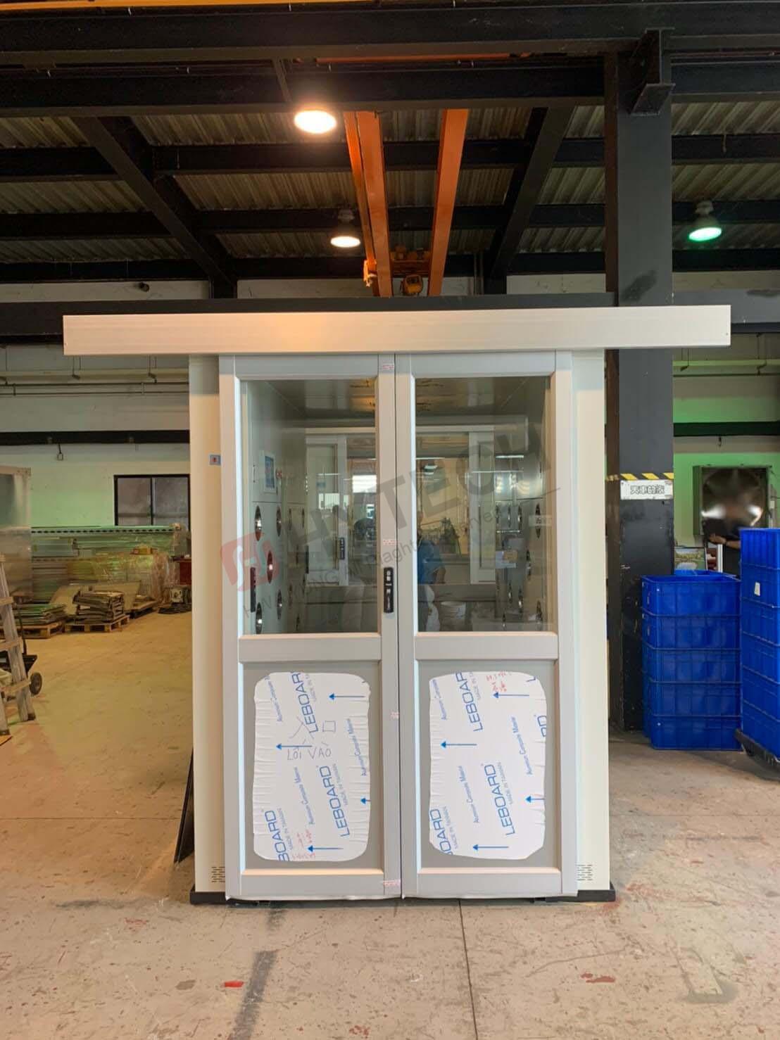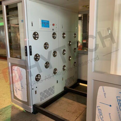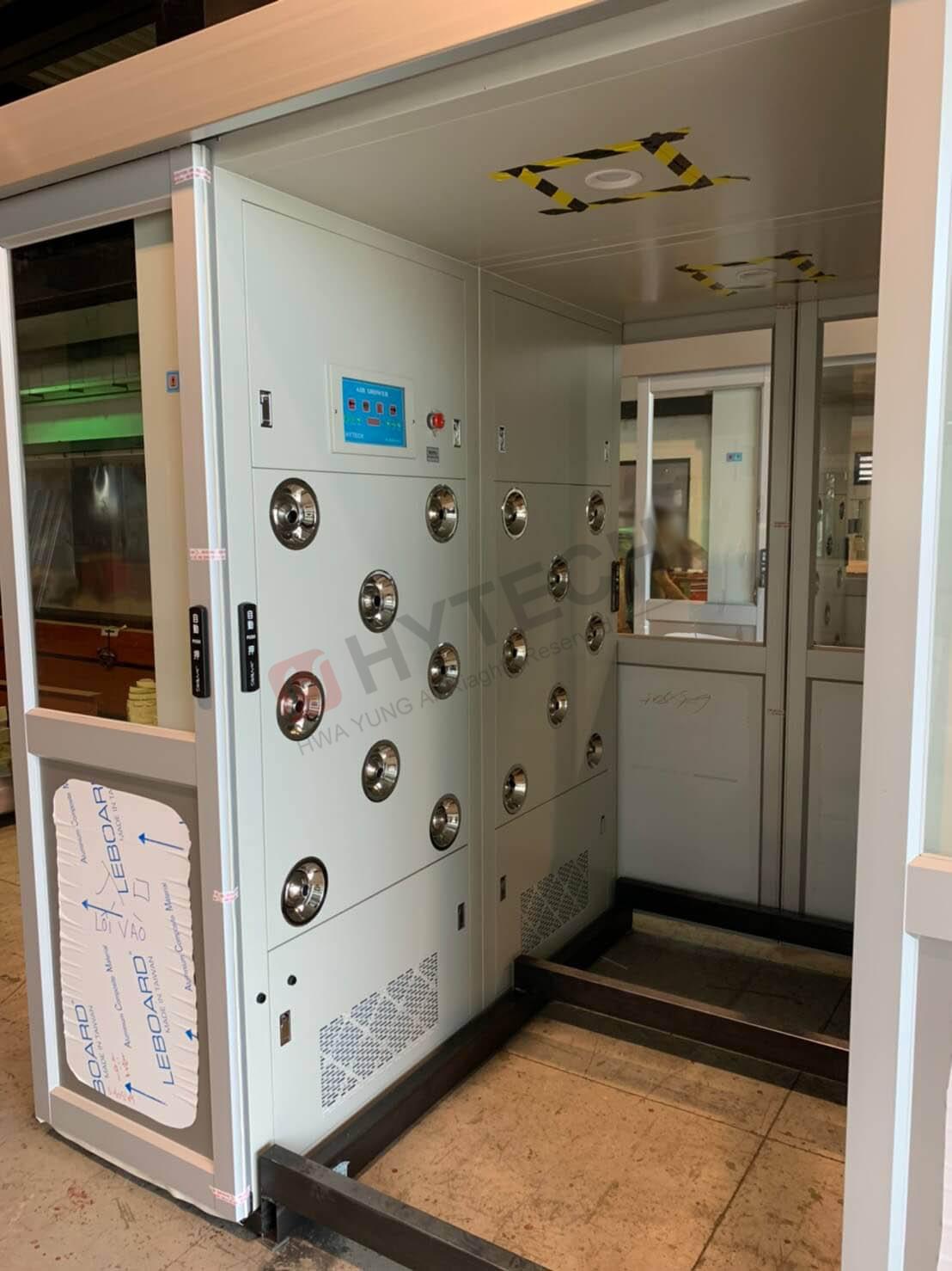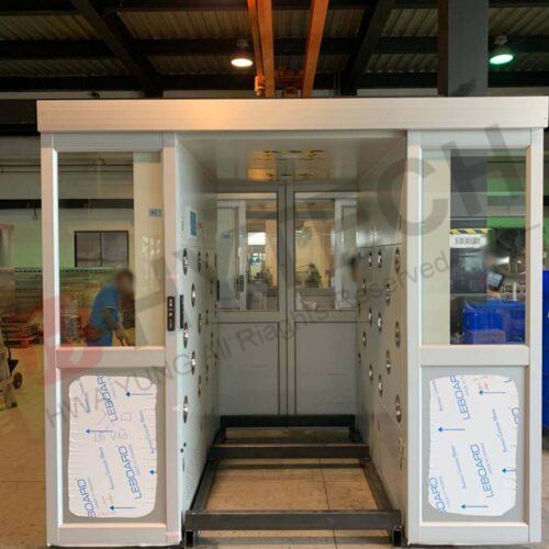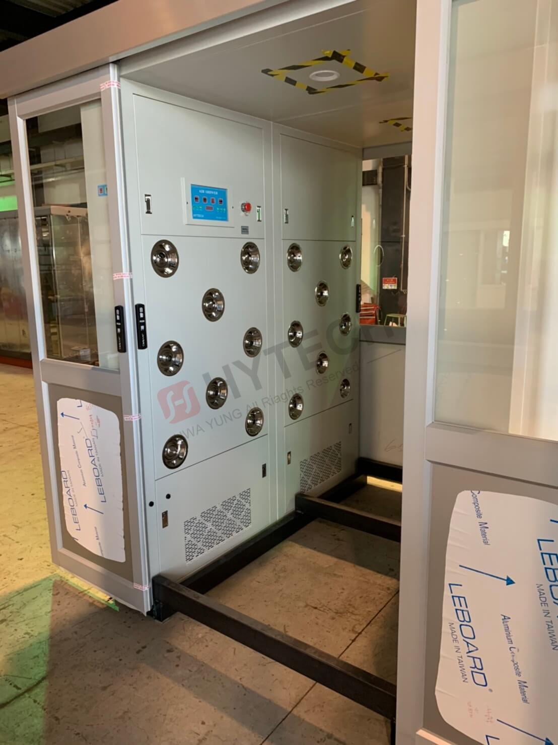 出口國外,依客戶需求加長加寬,可容納雙人同時進行除塵,並搭載自動門功能(雙門)。