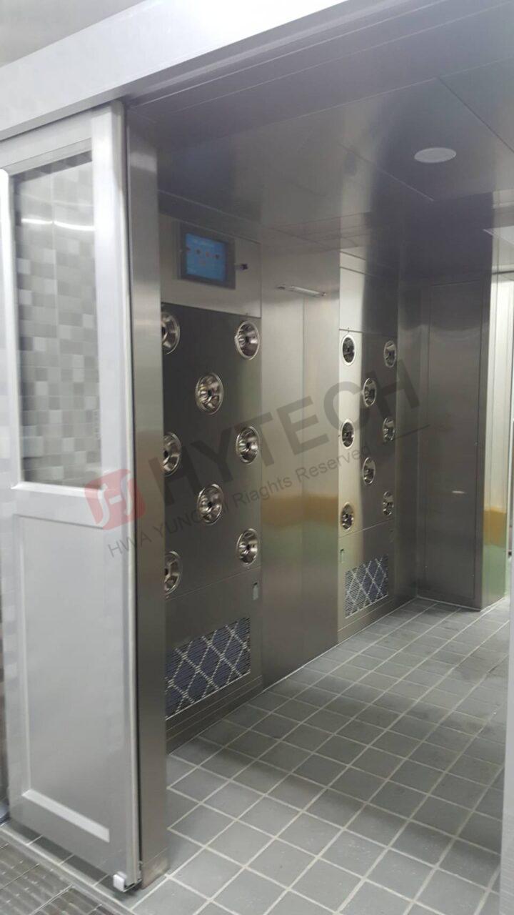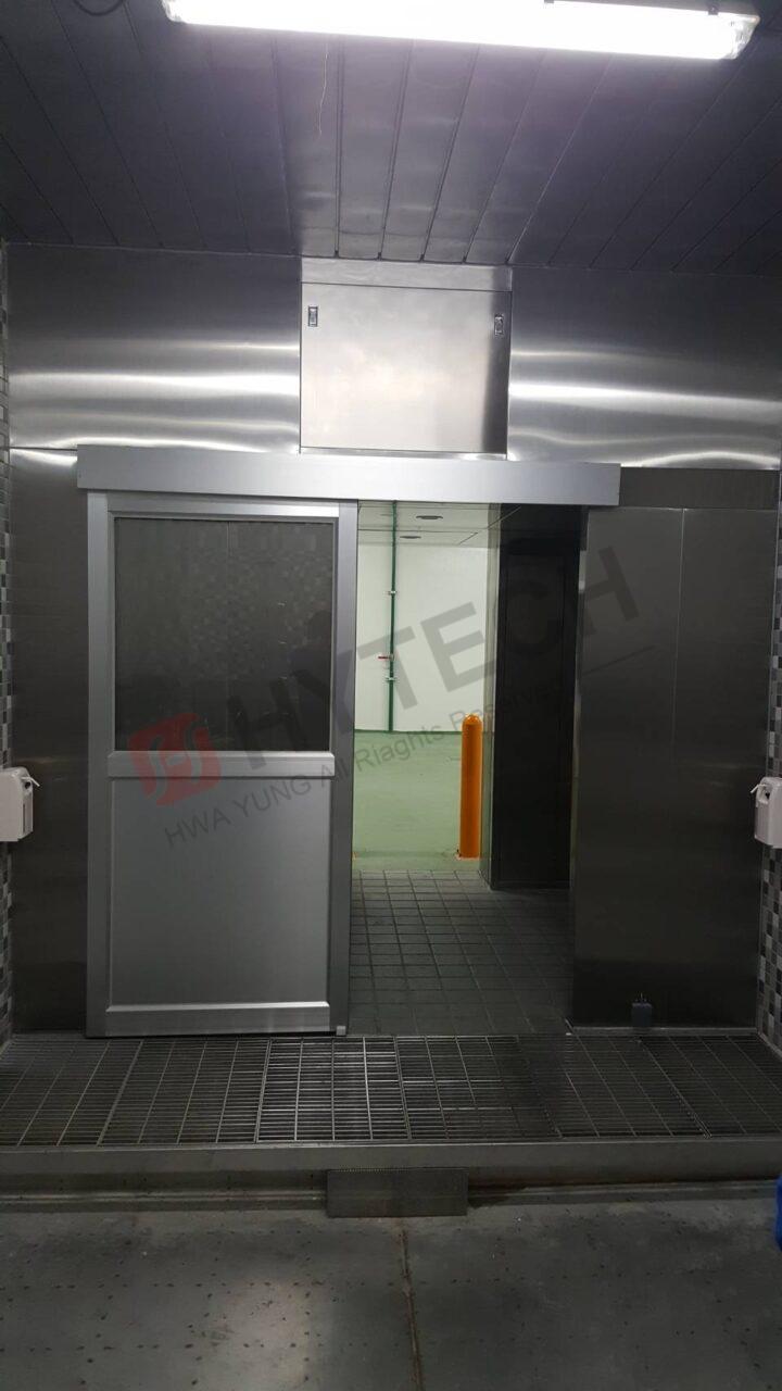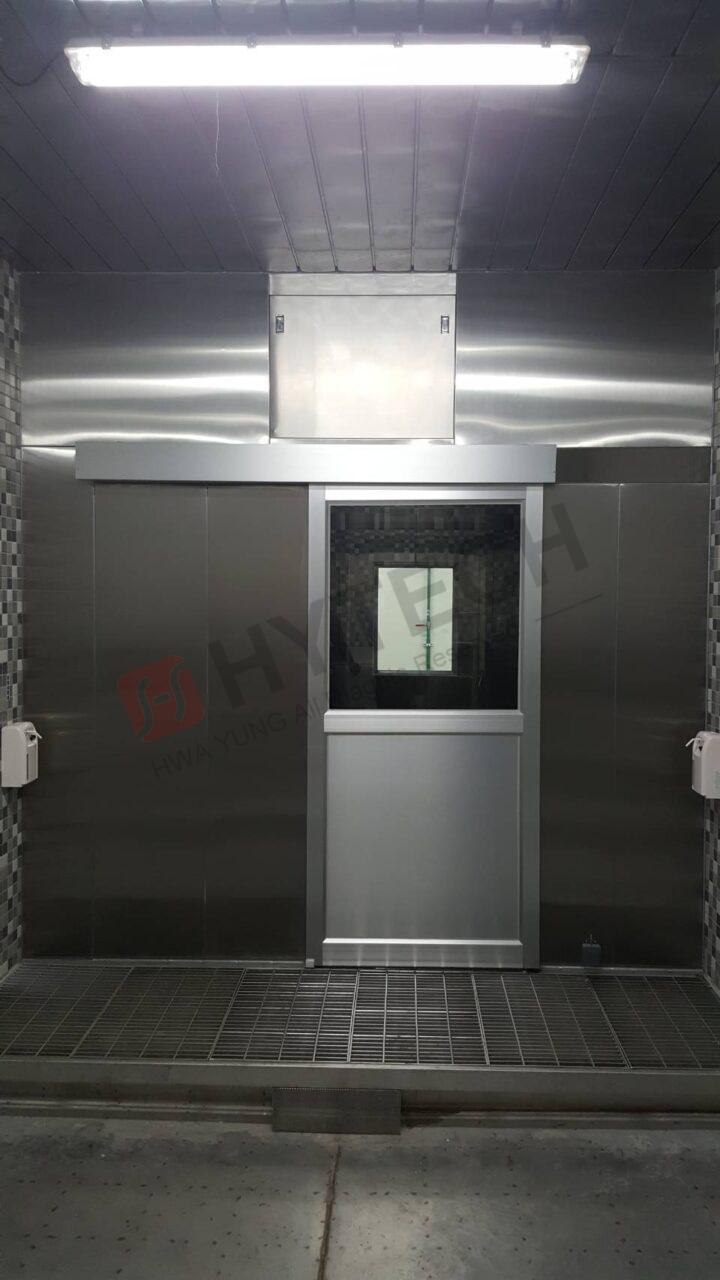 不鏽鋼材質,適用食品相關產業,浴塵室採客製化雙開自動鋁門進出(特殊尺寸)。