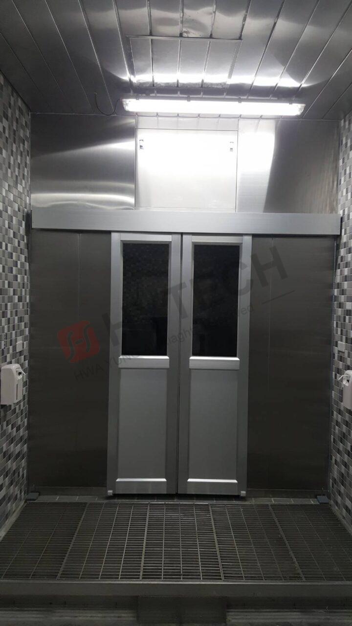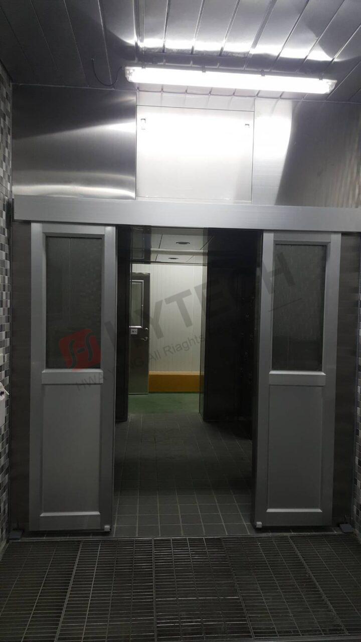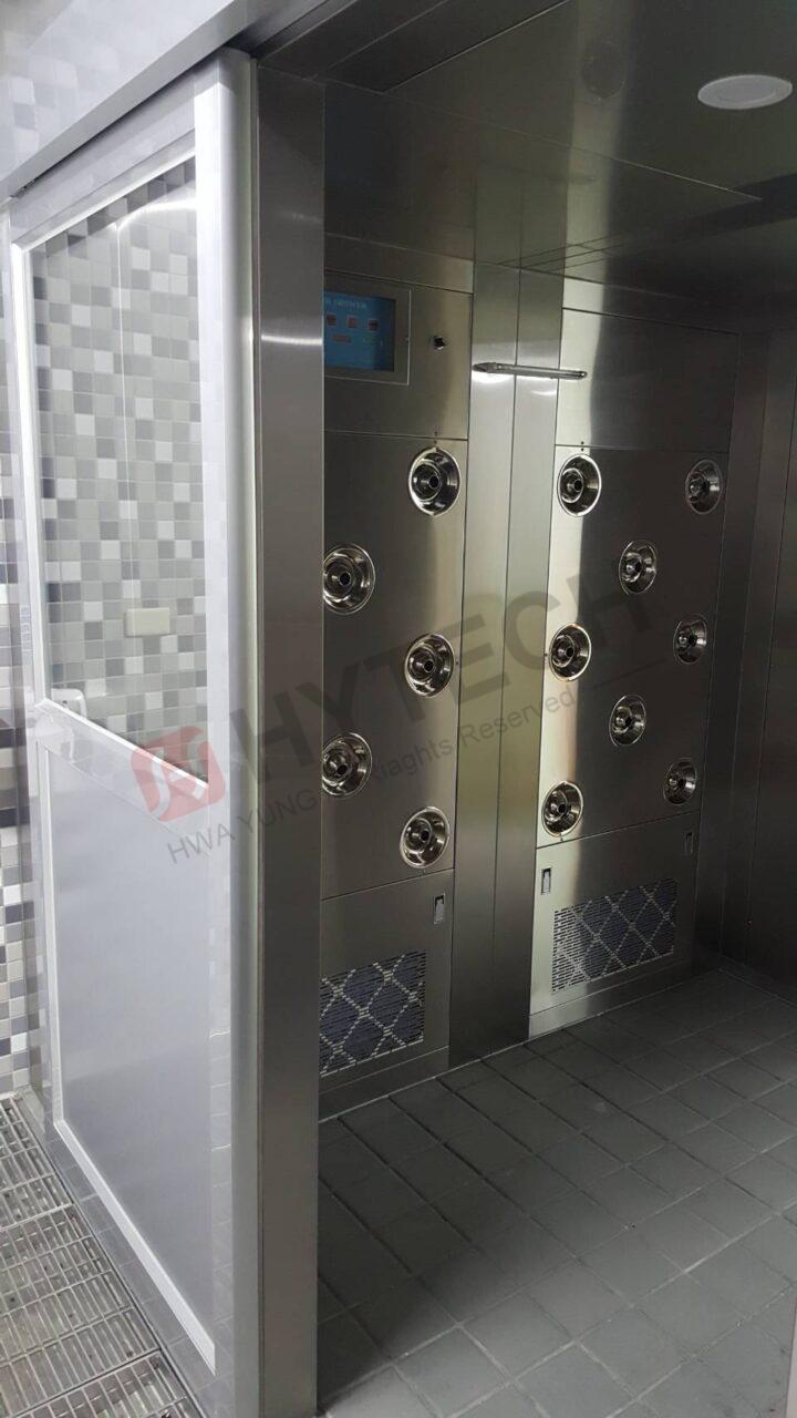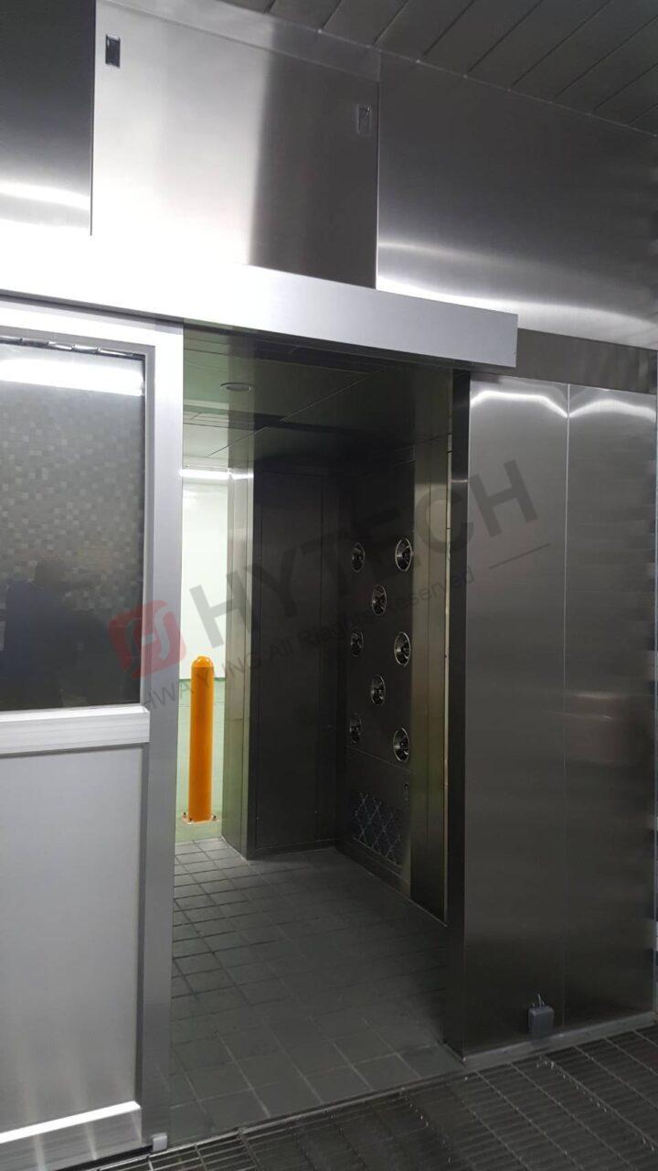 不鏽鋼材質,適用食品相關產業,浴塵室採客製化雙開自動鋁門進出(特殊尺寸)。
