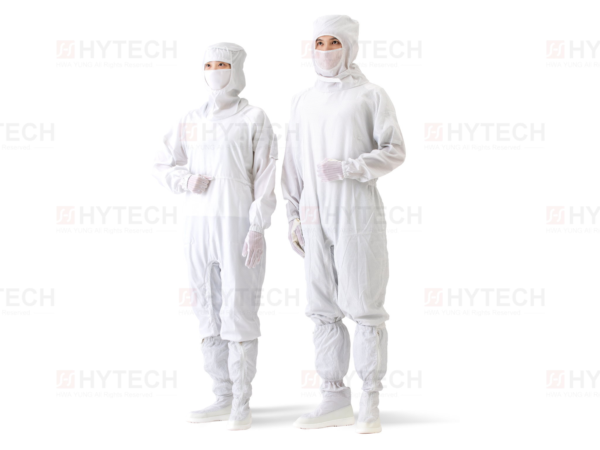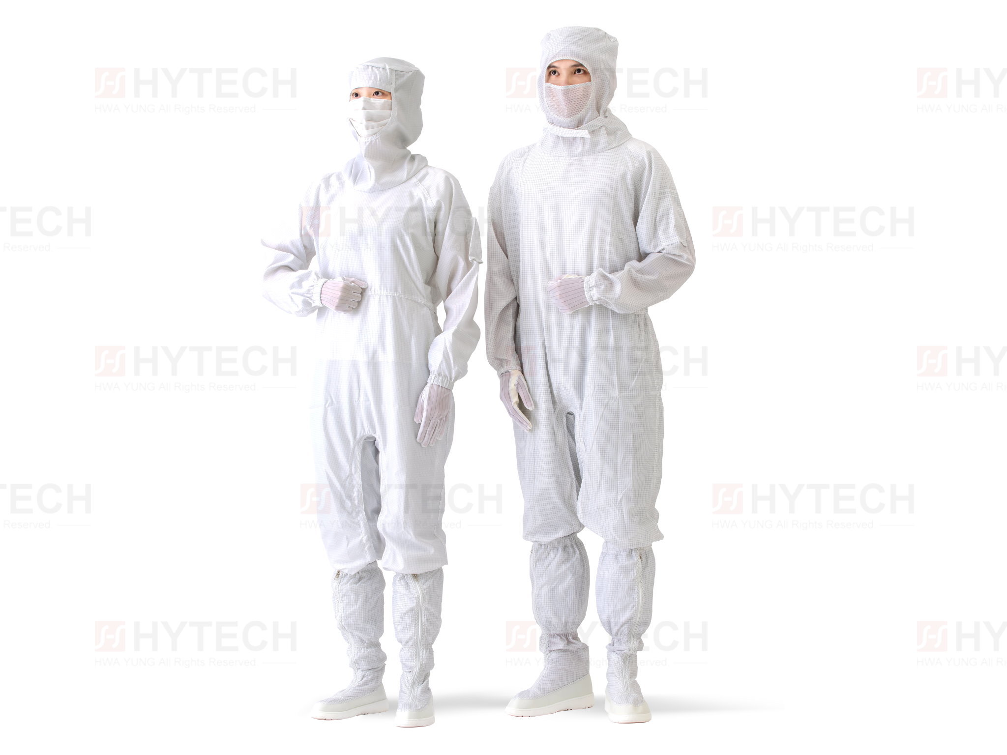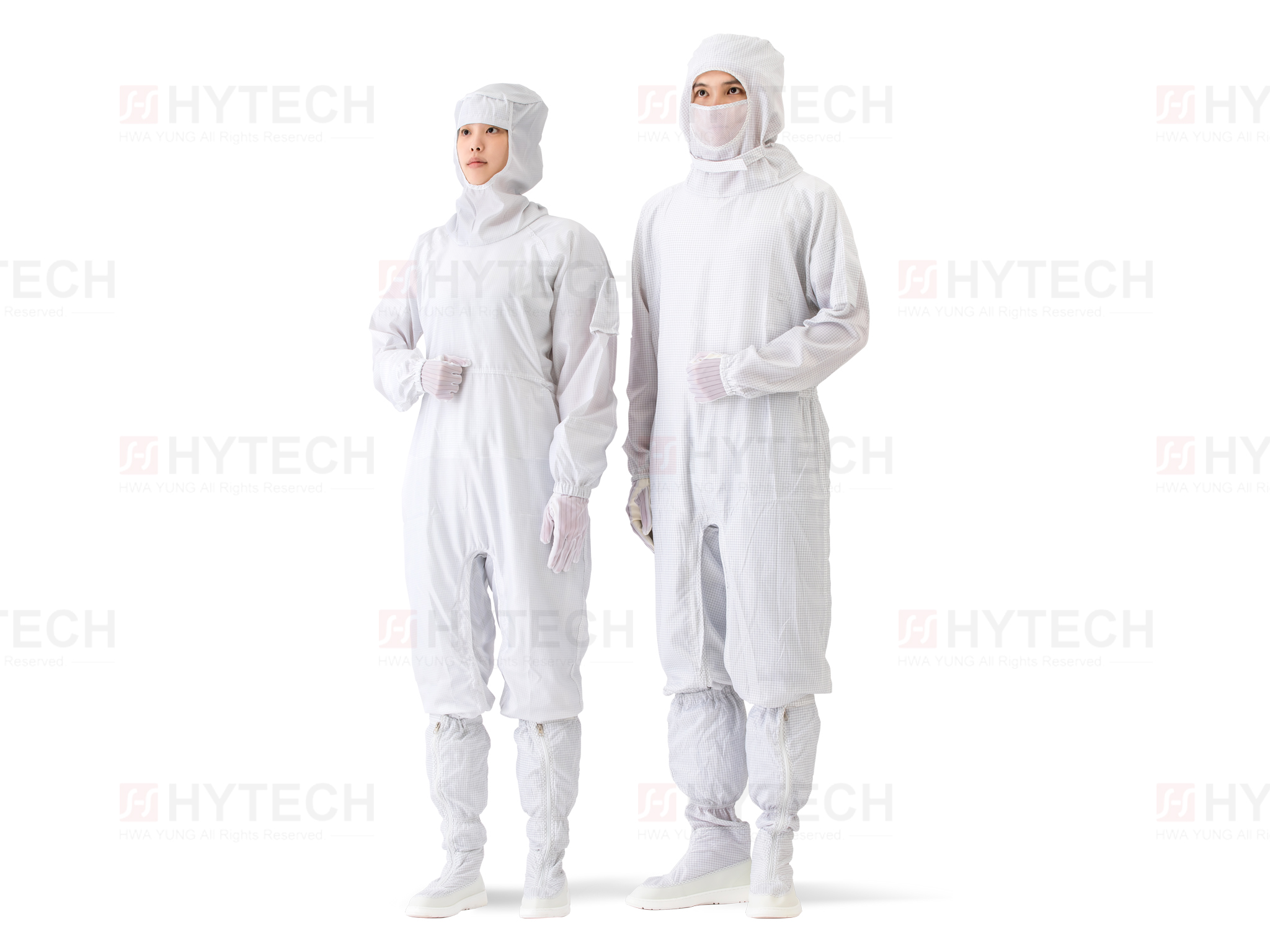 根據無塵室級別要求提供不同款式,袖口褲管為特有的雙層結構,內層嵌織導電纖維,高效防塵、防治靜電。