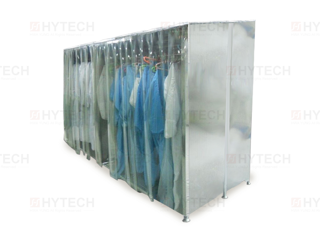 人員從更衣區進入Clean Room必須通過Air Shower,利用高速強力的潔淨空氣, 快速清除附著在無塵衣上的灰塵、頭髮、毛屑等雜物,同時具有 Air Lock氣鎖功能,可以有效控制人員進出不同等級清淨室的緩衝室,大幅減少人員進出所帶來的污染問題,防止交叉污染,達到無塵室等級標準。