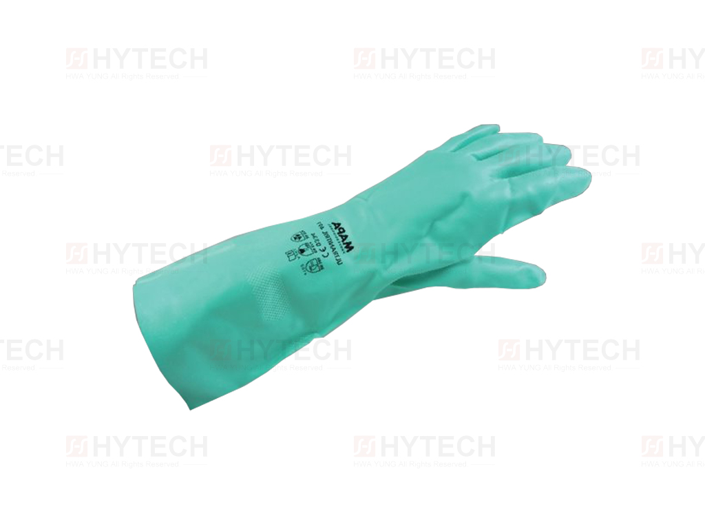 HYTECH供應之防溶劑手套,內裡使用絨質布可保持內部乾爽恆溫,掌部具有壓紋防滑效果,且在抗化學溶劑上有優異表現: