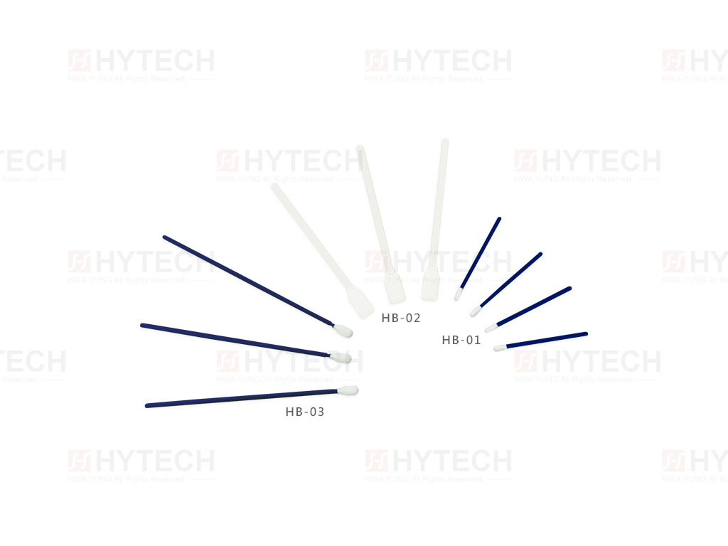 華湧擁有完整的擦拭棒系列,因應客戶的各種需求,可依照客戶所應用的範圍,來選擇無塵布或泡棉頭,並且有多種長度可做選擇。