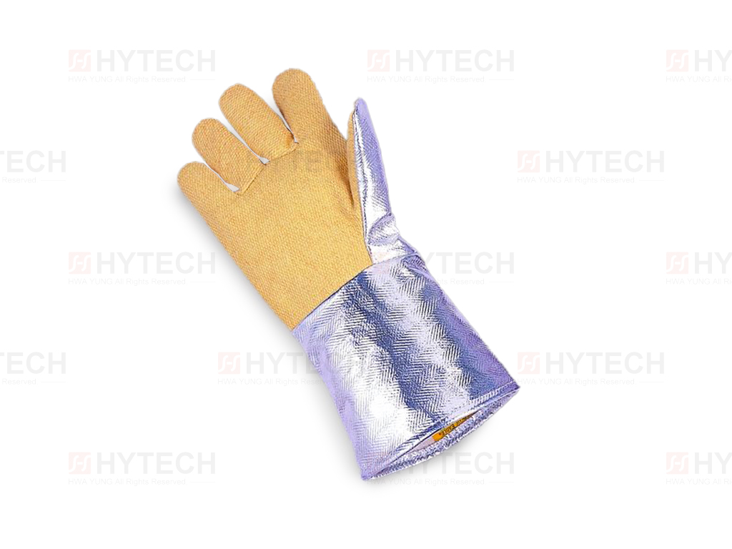 手心及姆指部份由杜邦防火材料絲被覆防熱鋁箔構成。