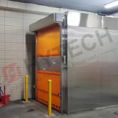 Stainless steel grill material, suitable for food industry, adopt insect-proof PVC quick-rolling door for opening and closing.